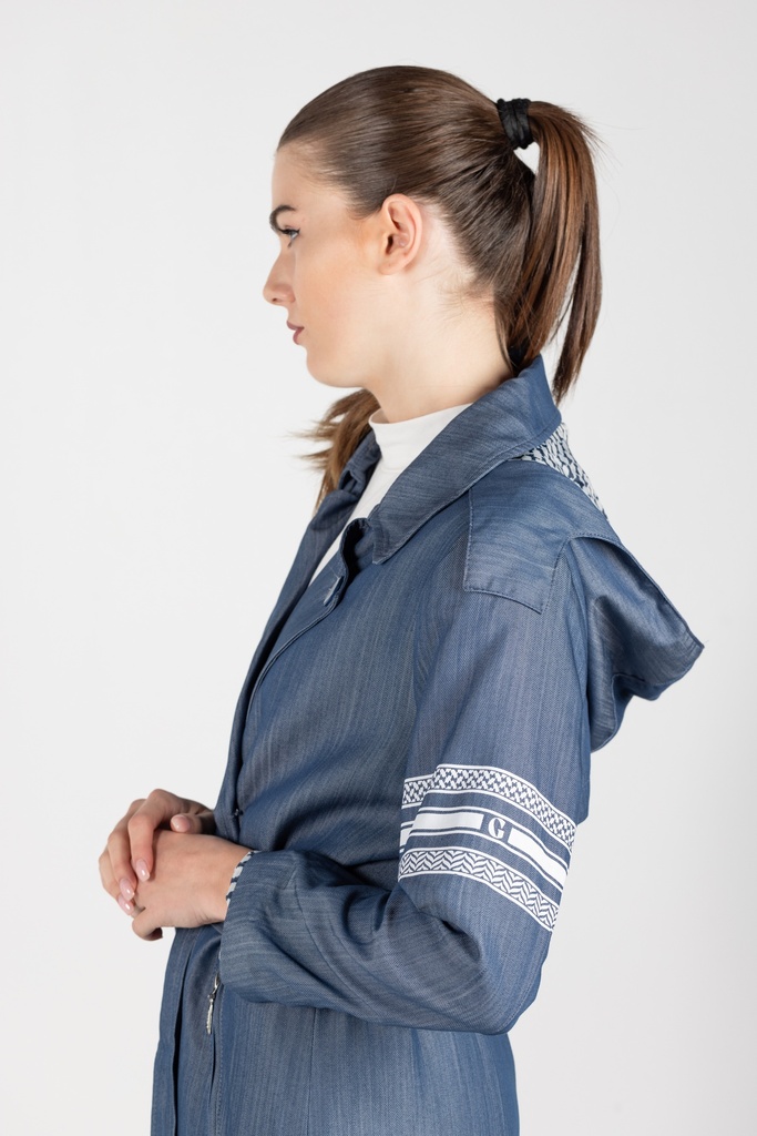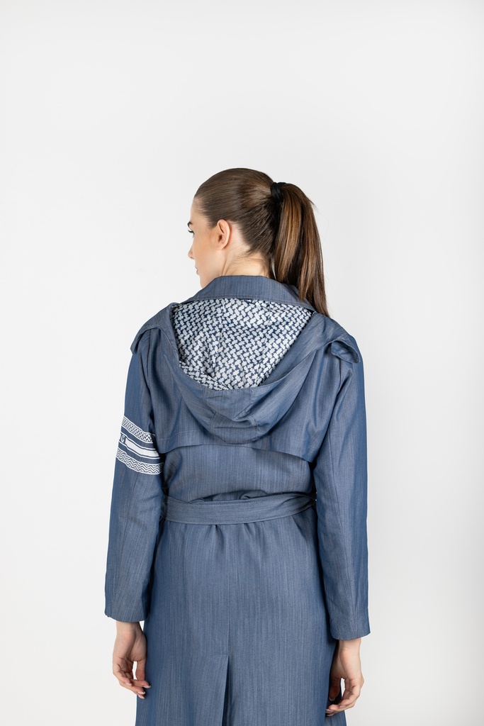 Long colored trench coat featuring notched collar, double-breasted button fastening, long sleeves, belted cuffs and a belted waist