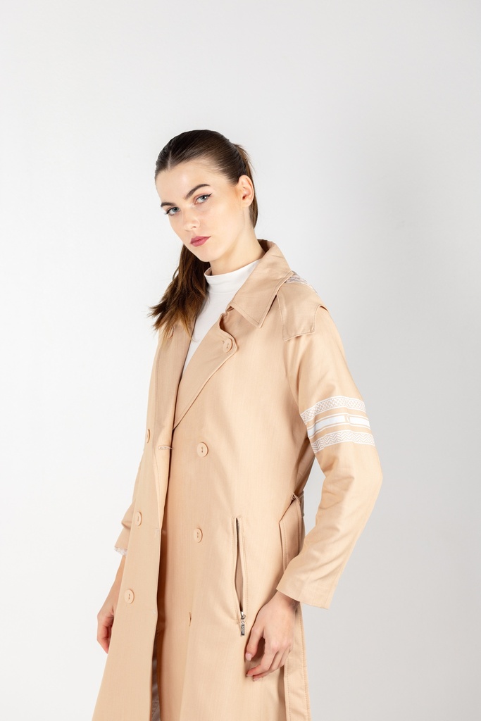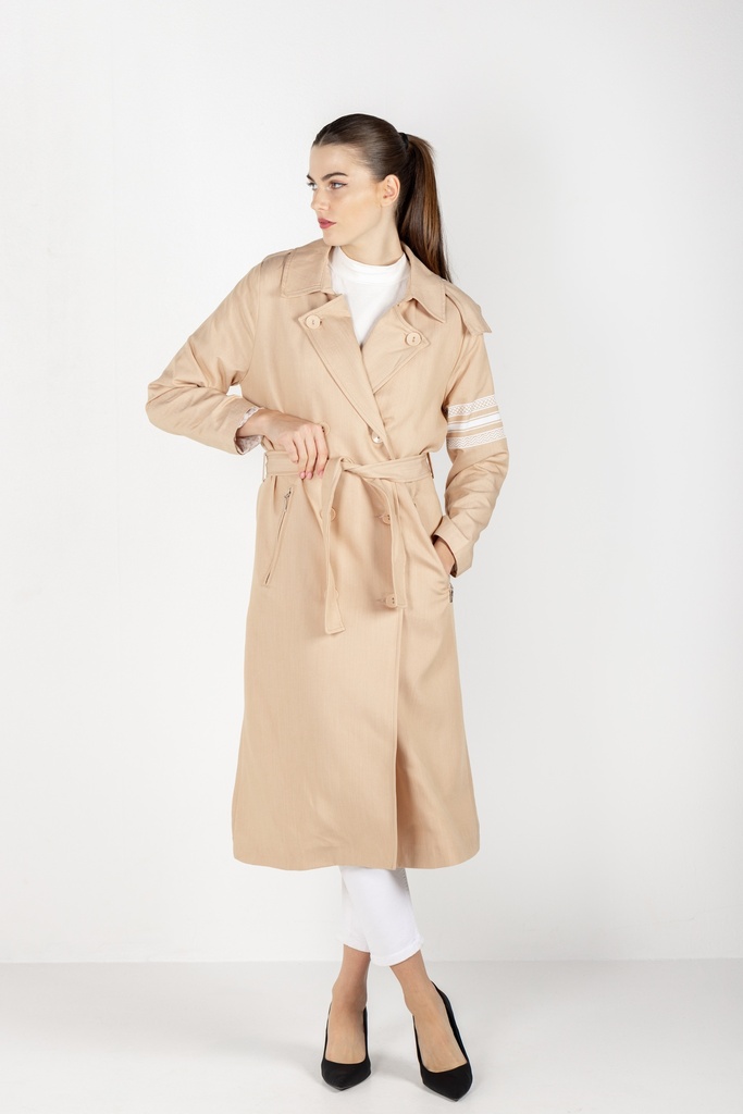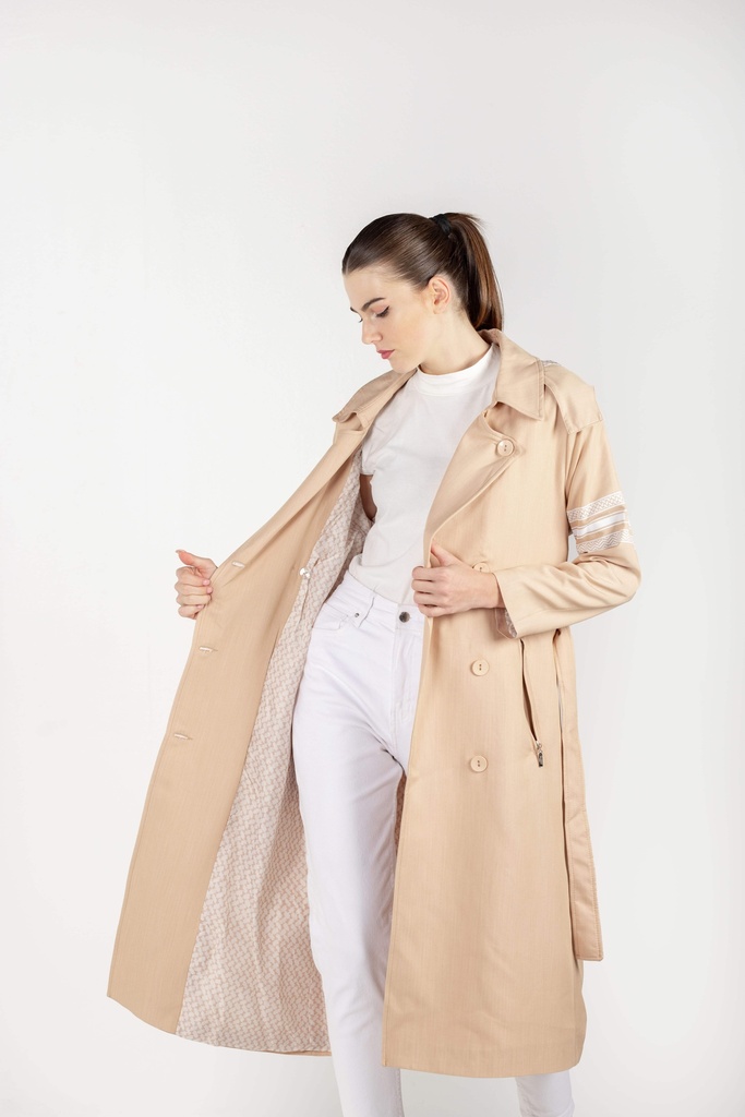 Beige Hooded Trench Coat
