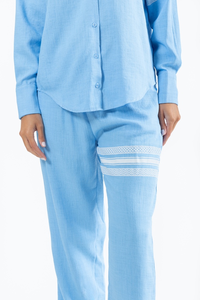 Full-Length Pants in an Airy, Woven Viscose And Linen Blend. High Waist, Elasticized, Drawstring Waistband, And Wide Legs With Side-Seam Pockets.