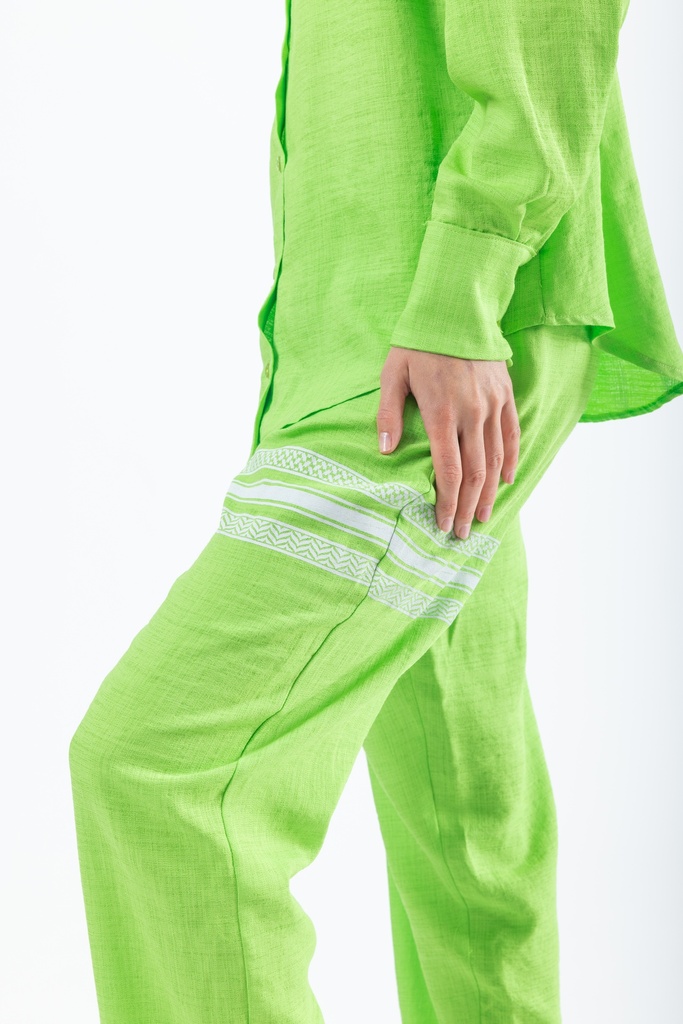 Full-Length Pants in an Airy, Woven Viscose And Linen Blend. High Waist, Elasticized, Drawstring Waistband, And Wide Legs With Side-Seam Pockets.
