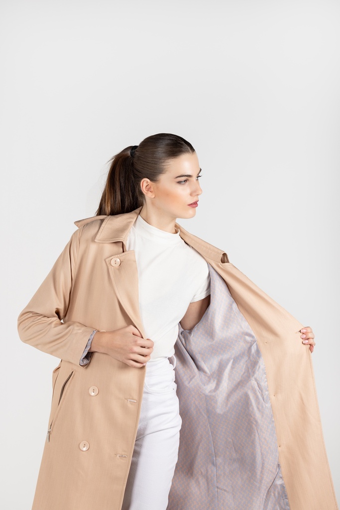 Beige Hooded Trench Coat